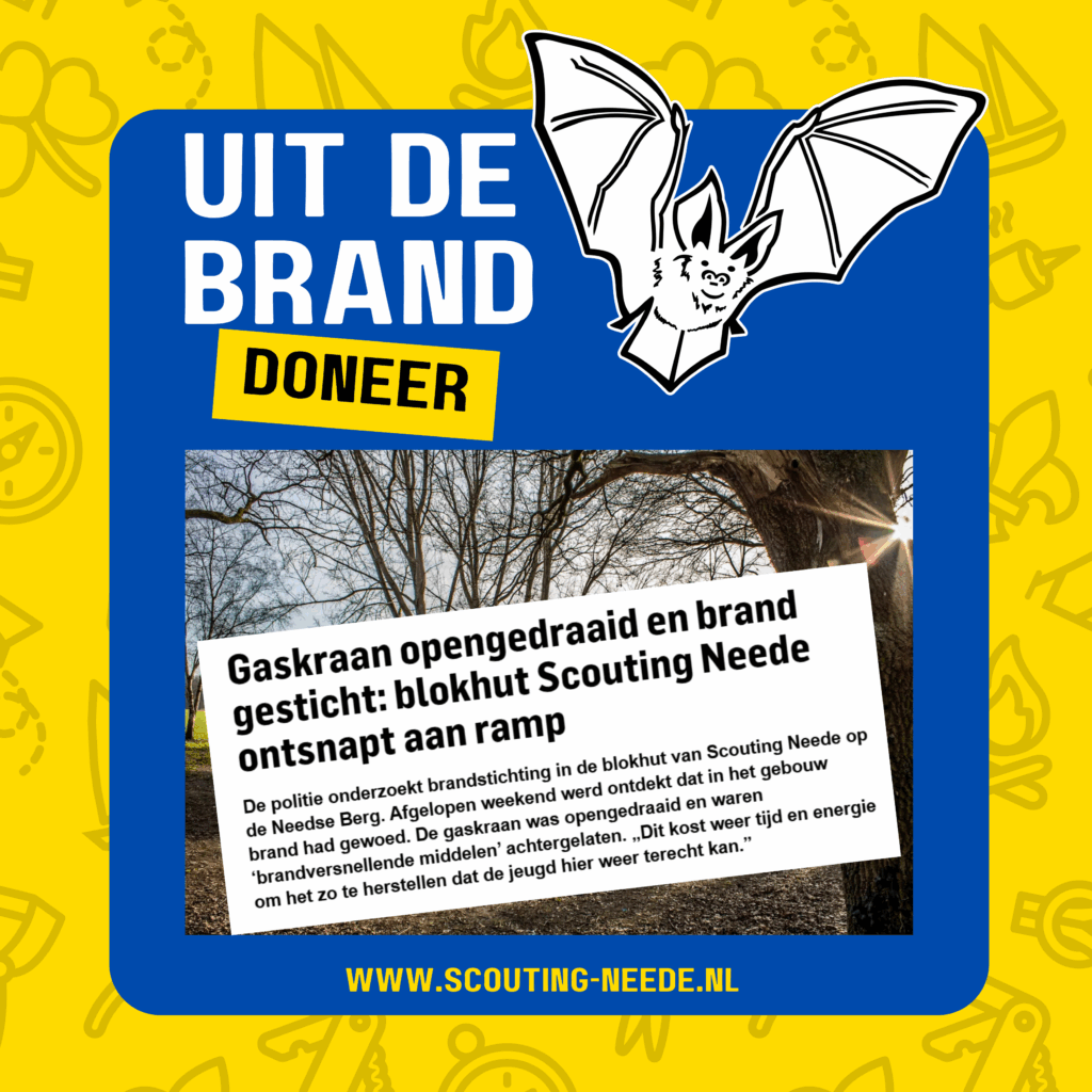 Eind 2023 is onze blokhut ‘De Berkeboom’ op de Needse Berg het slachtoffer geworden van brandstichting. In het gebouw zijn brandversnellende middelen achtergelaten en de gaskraan was opengedraaid, wat resulteerde in een verwoestende binnenbrand. De schade is aanzienlijk, waardoor het gebouw onbruikbaar werd. Wat ooit een levendige plek was voor Scoutingactiviteiten en natuurbeleving, veranderde in één dag in een beschadigde en onveilige omgeving.